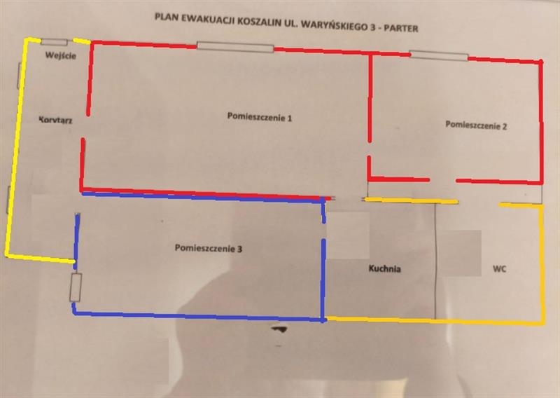 Do wynajęcia również część lokalu o pow. 27 m2 składająca się z jednego pokoju ( na plane zaznaczona kolorem niebieskim) z możliwością korzystania z kuchni i łazienki - 1.700 zł/m-c