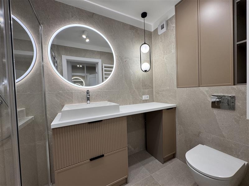 W cenie kuchnia, która została wyposażona w sprzęt AGD (lodówka, piekarnik, zmywarka, płyta indukcyjna, okap) oraz wykończona łazienka.