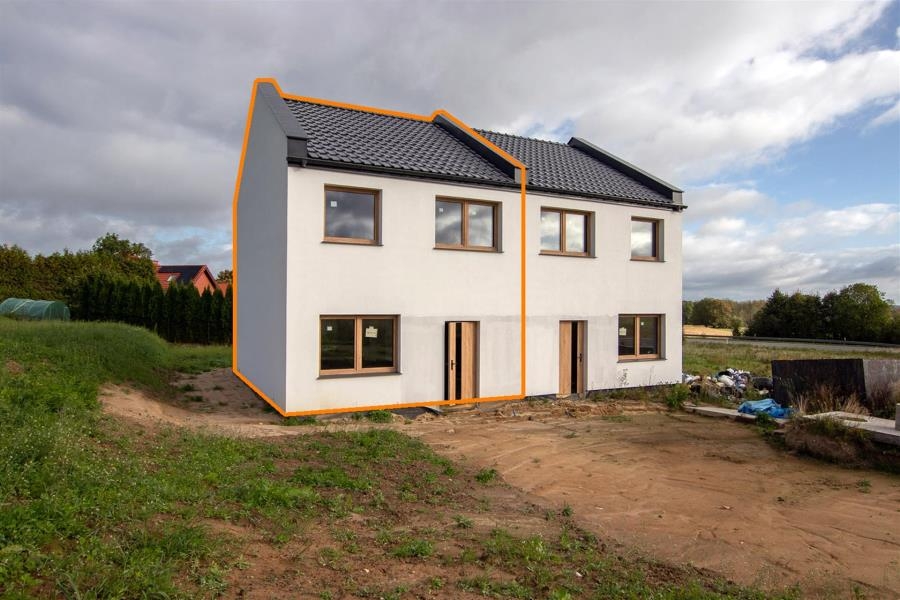 Dom jednorodzinny w trakcie budowy zlokalizowany na terenie nowego osiedla domów jednorodzinnych.
