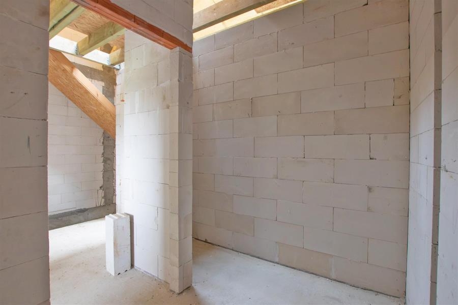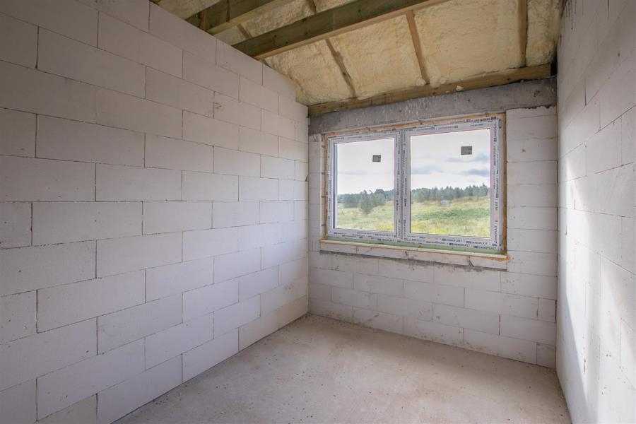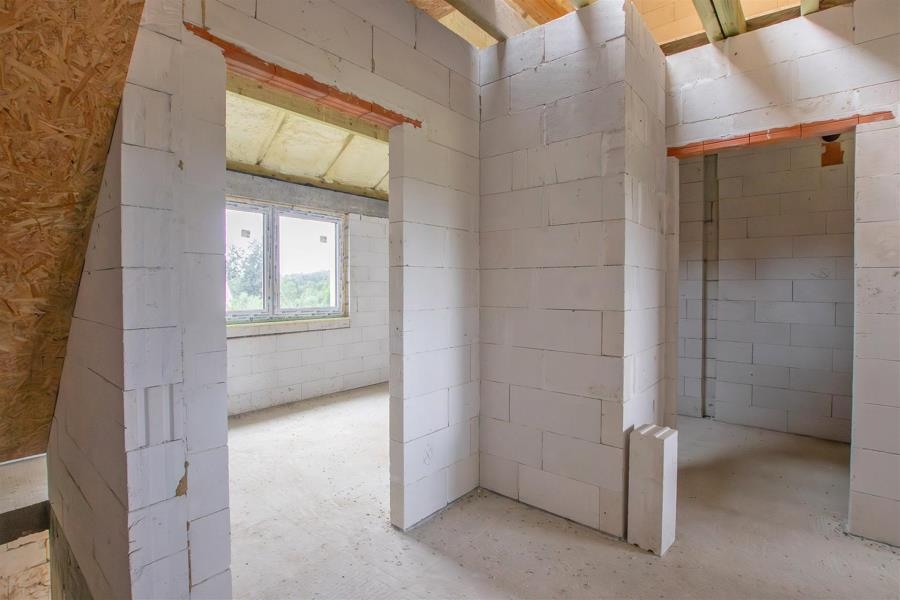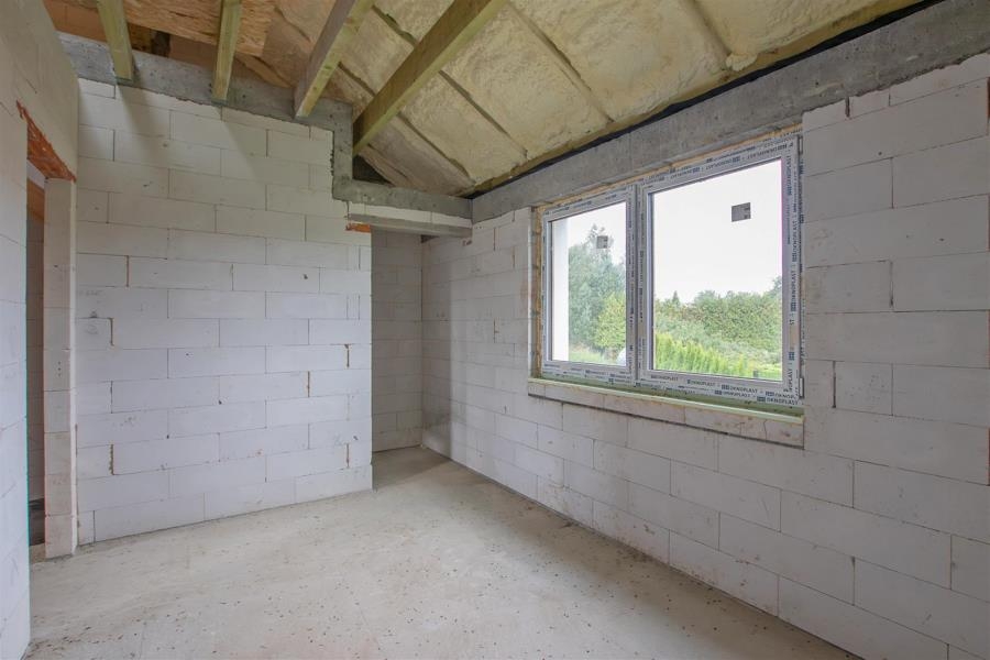 Budynek 2- kondygnacyjny z poddaszem, niepodpiwniczony - stan surowy zamknięty zadaszony.