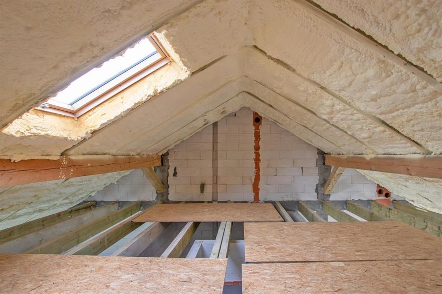 Dach dwuspadowy pokryty dachówką ceramiczną, ocieplony pianką poliuretanową.