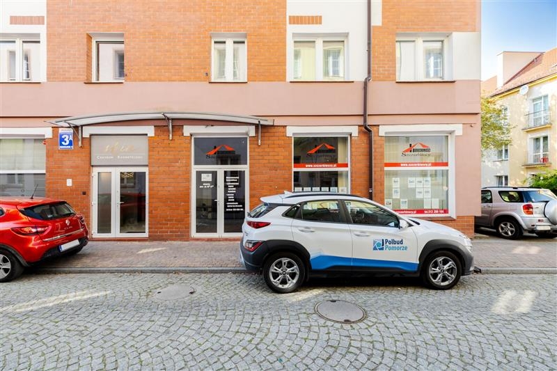 Lokal użytkowy o powierzchni 75,43 m2 położony na parterze w budynku mieszkalno - usługowym w ścisłym Centrum Koszalina, przy ulicy Bogusława II. Wejście bezpośrednio z chodnika.