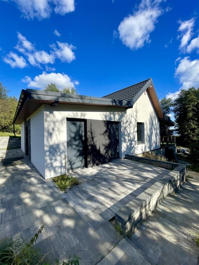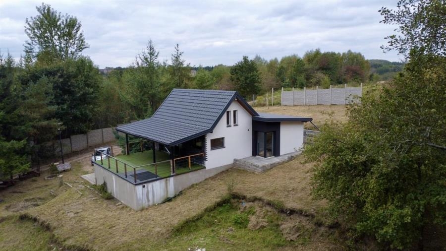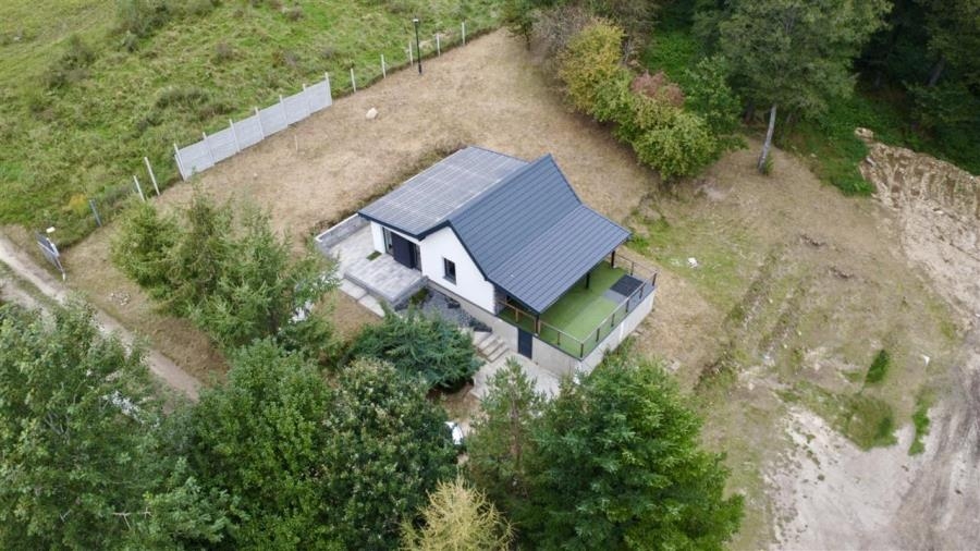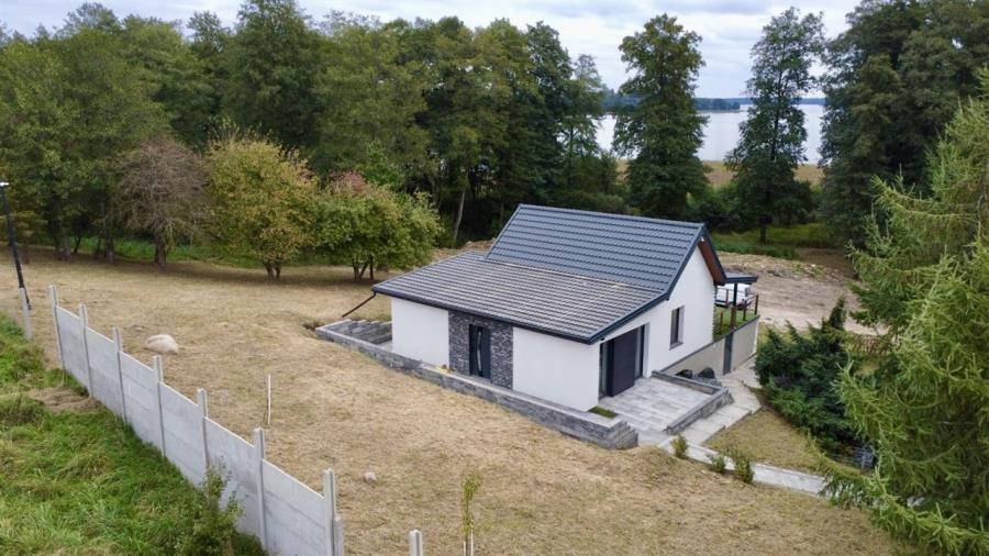 Dom o pow. 86m2, położony jest w spokojnej i malowniczej okolicy, z pięknym widokiem na jezioro i otaczającą przyrodę - w części nieruchomość położona na obszarze Natura 2000.