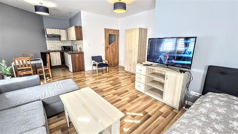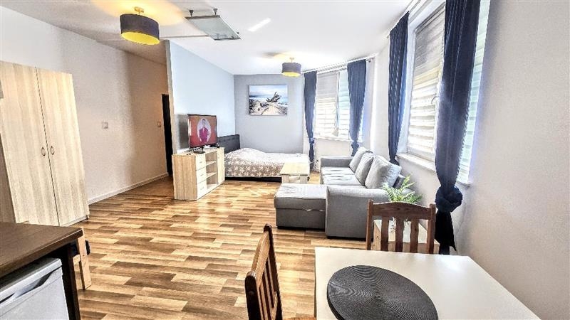 W pokoju łóżko sypialniane i kanapa narożnikowa co pozwala na wynajem rodzinie. Wszystko zostaje w cenie lokalu.