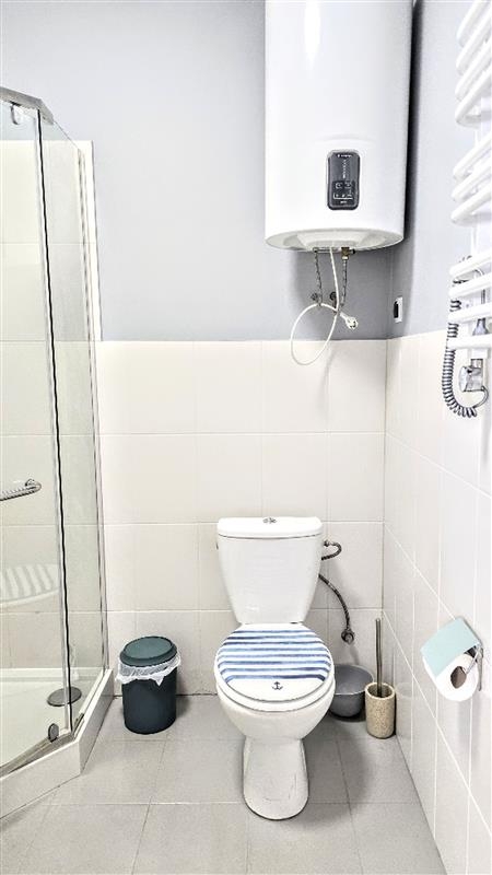 Łazienka: bojler elektryczny, kabina prysznicowa, wc.