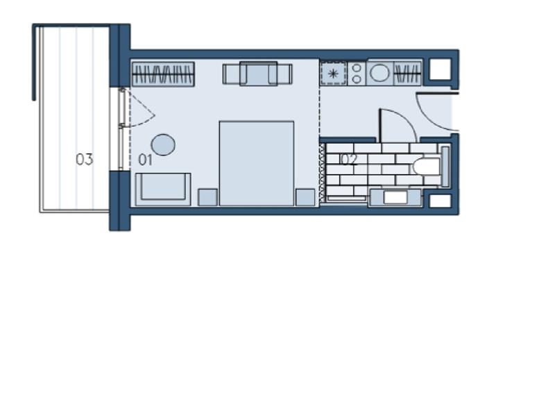 Cała powierzchnia ma 23,20m2 plus balkon (6m2).