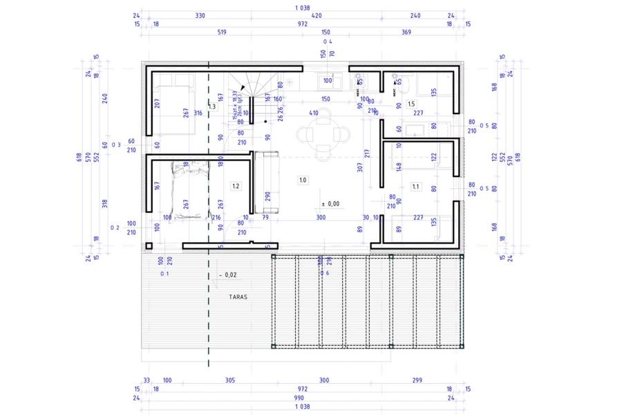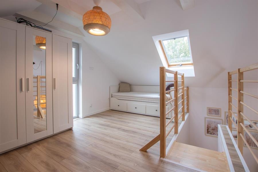 - antresola o pow. 6,21 m² (18 m² po podłodze) pełniąca rolę dodatkowego miejsca do wypoczynku / pracy;