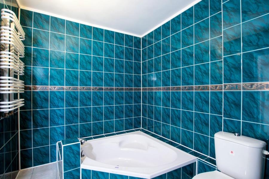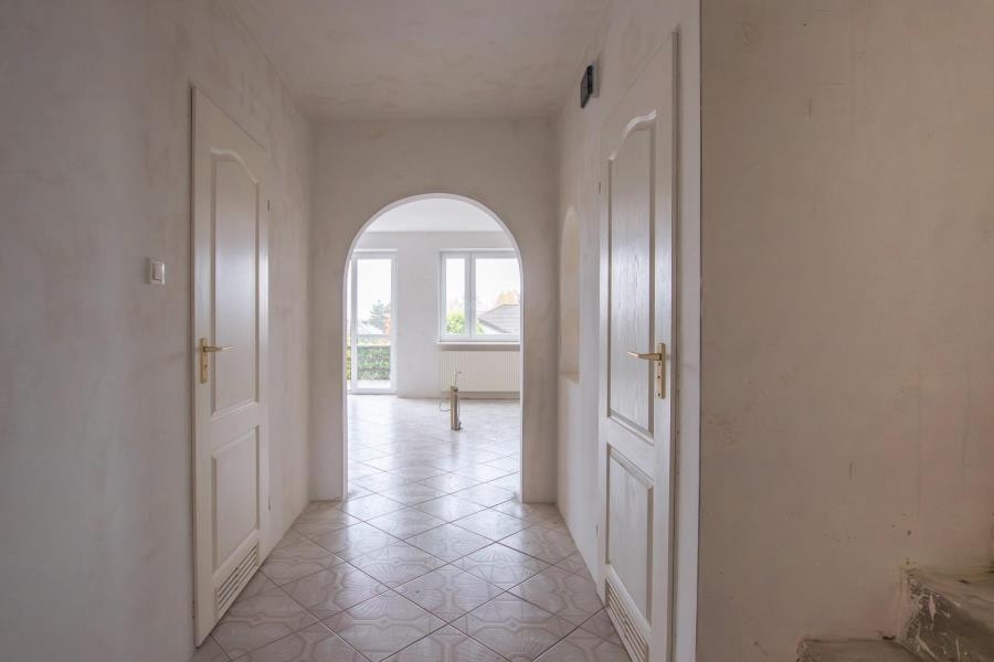 Okna PCV oraz drewniane, podłogi w kuchni z jadalnią - terakota, w pokojach wylewki cementowe, ściany tynki gipsowe.