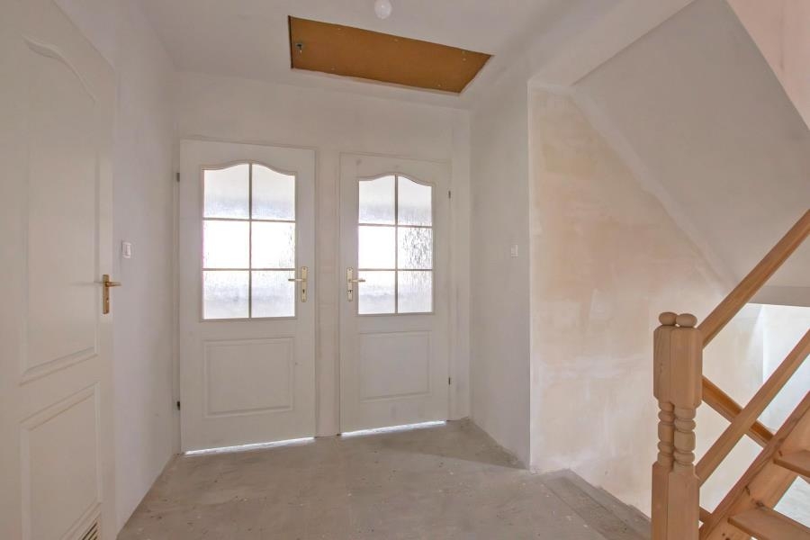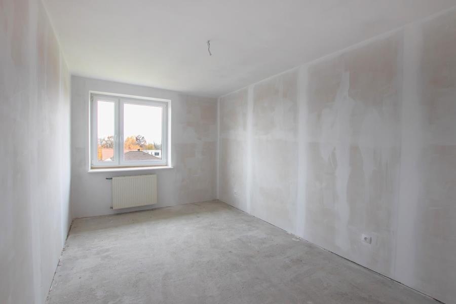 Budynek mieszkalny z garażem w zabudowie bliźniaczej do wykończenia wewnątrz.