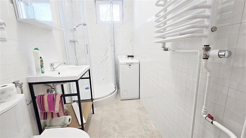 Łazienka  po remoncie kapitalnym, instalacje wymienione. Piecyk gazowy wymieniony  na elektryczny, ze względów bezpieczeństwa. Nowa pralka pozostaje w  cenie .