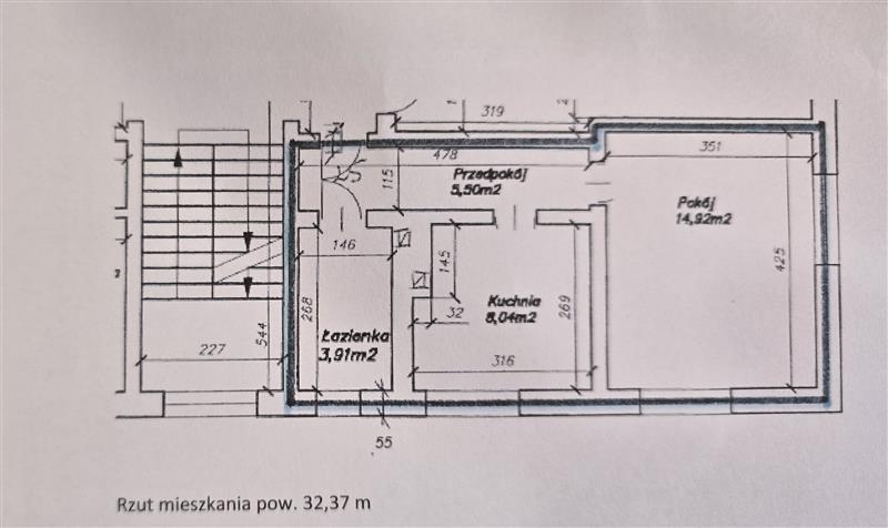 DEKLARACJA ZAKUPU Oferujemy do sprzedaży mieszkanie 1 pokojowe położone na I piętrze w budynku  dwupiętrowym przy ul. Łużyckiej.