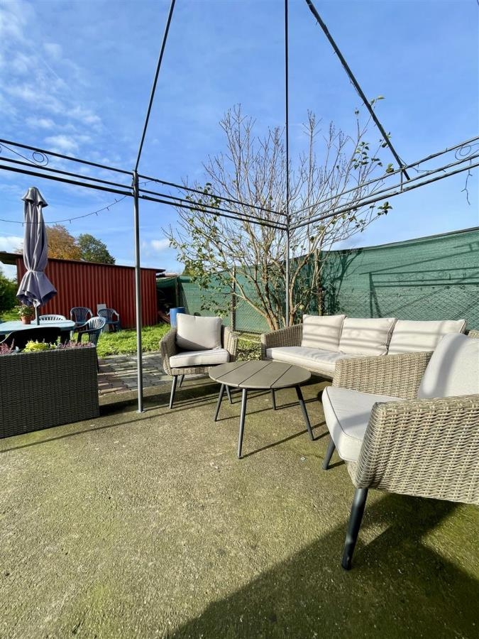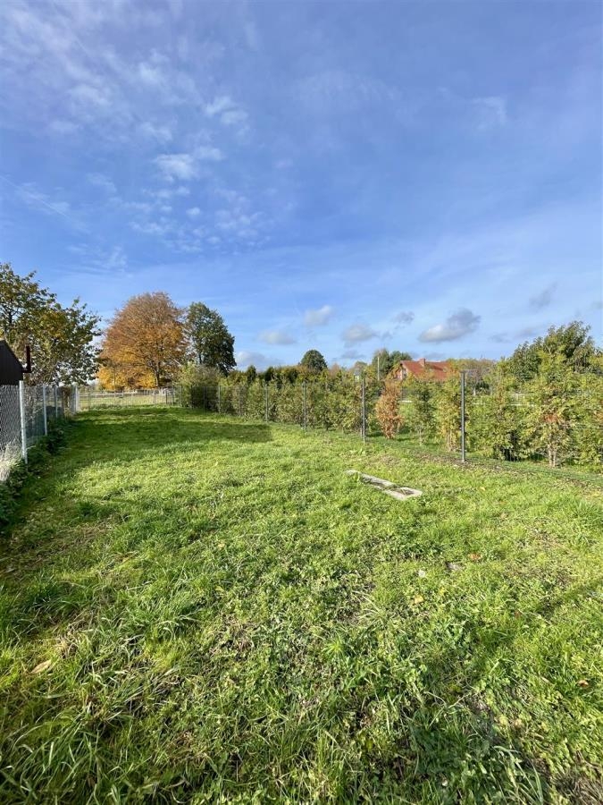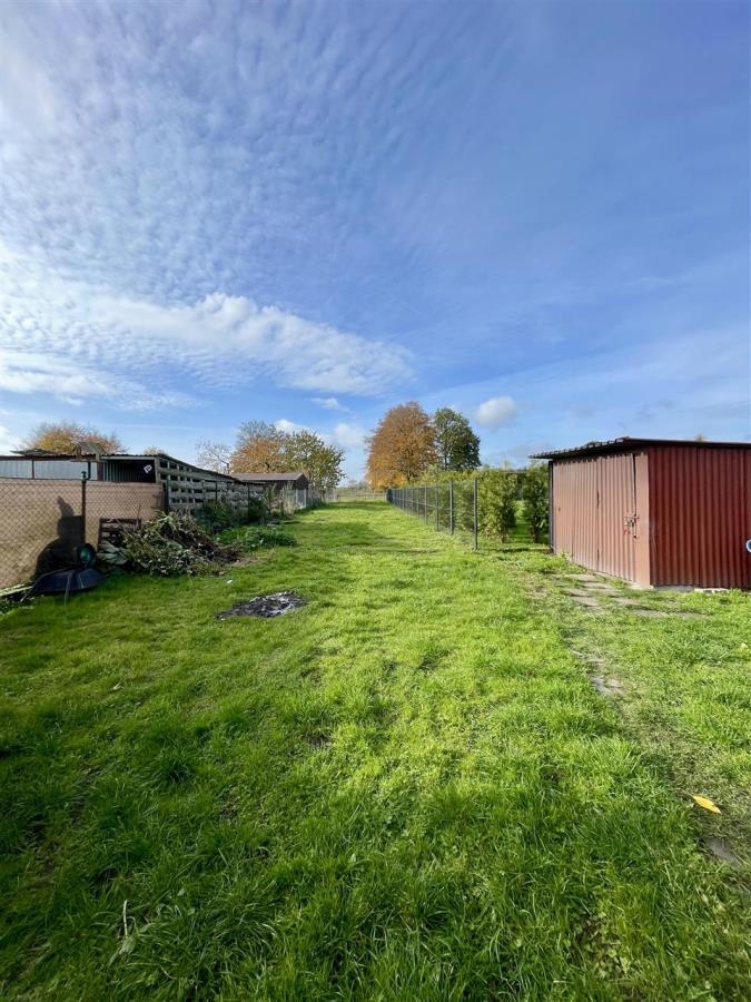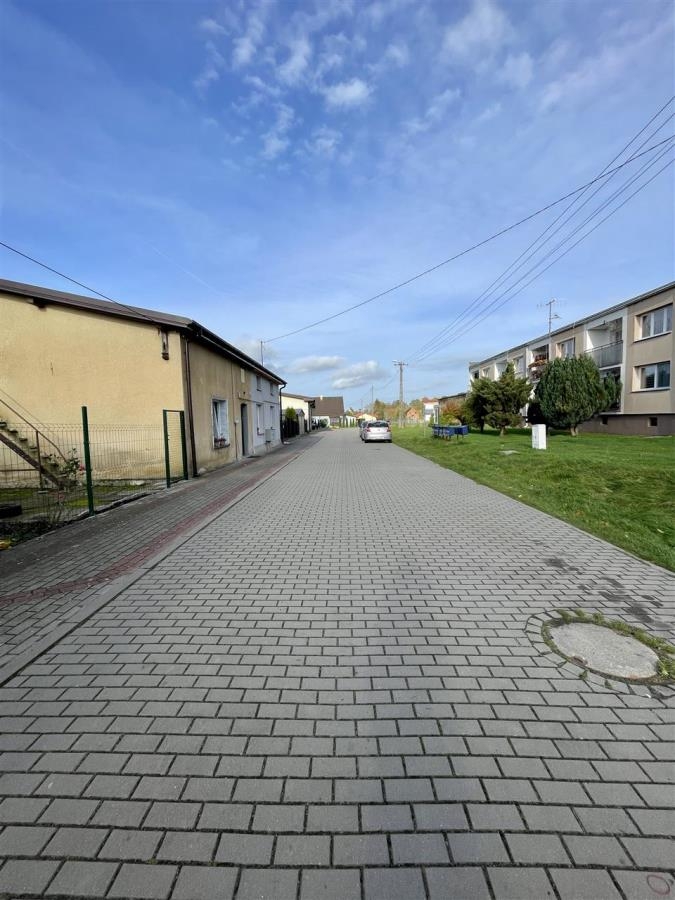 Teren w całości ogrodzony - w części zagospodarowany ogródkiem warzywnym i krzewami ozdobnymi. Na posesji posadowiony również niewielki garaż (blaszak). Od frontu ogrodzenie posiada furtkę, od tyłu - bramę wjazdową.