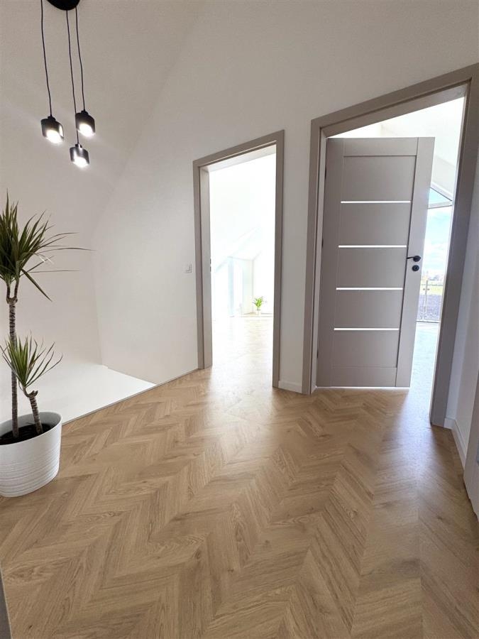Dom położony jest na nowo powstającym osiedlu domów jednorodzinnych, w miejscu, gdzie nie ma jeszcze gęstej zabudowy – dzięki temu zyskujesz przestrzeń, spokój i piękne widoki na pobliskie pola. To idealna propozycja dla osób ceniących komfort, nowoczesny design i kontakt z naturą.