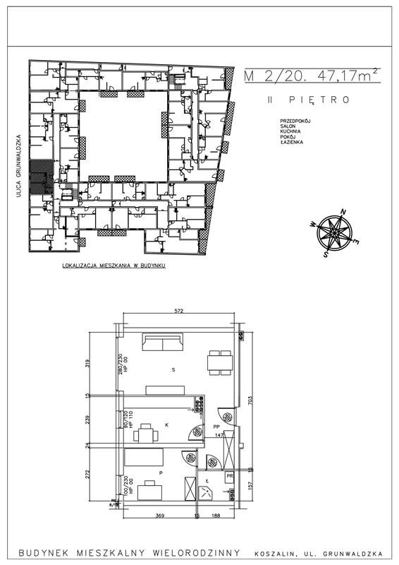 Oferowane mieszkanie o powierzchni 47,17m2, składa się z 2 ustawnych pokoi, oddzielnej kuchni z oknem, łazienki oraz przedpokoju.