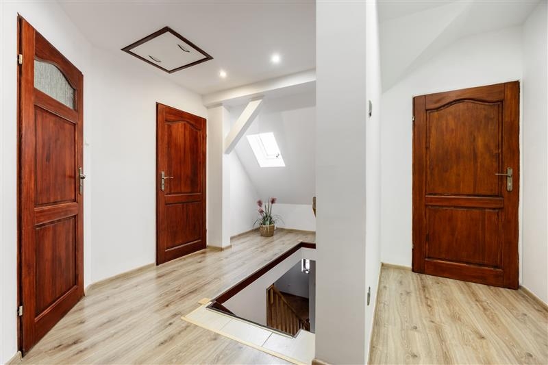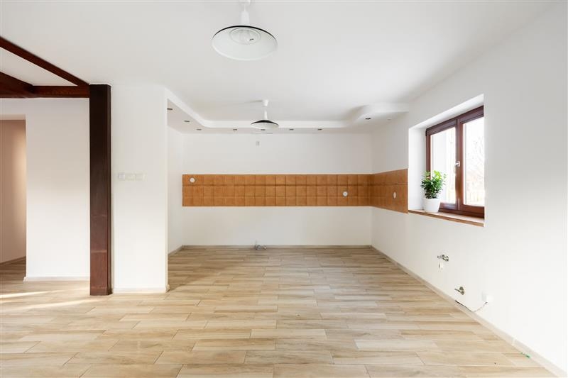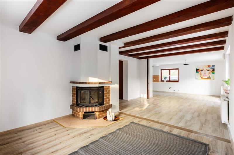 sześć wygodnych pokoi. Centralnym miejscem domu jest przestronny salon z aneksem kuchennym, kominkiem oraz