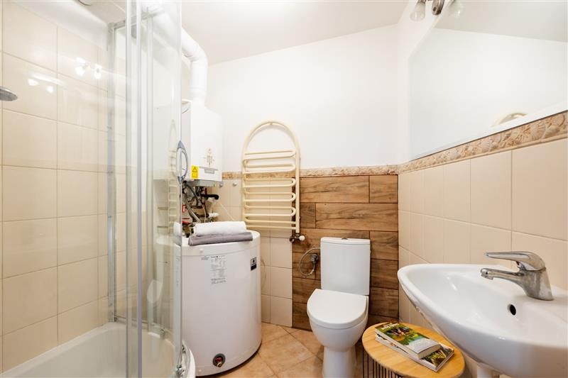 Wnętrze domu zostało funkcjonalnie zaprojektowane. Oferuje dwie łazienki, pomieszczenie gospodarcze, piwnicę oraz