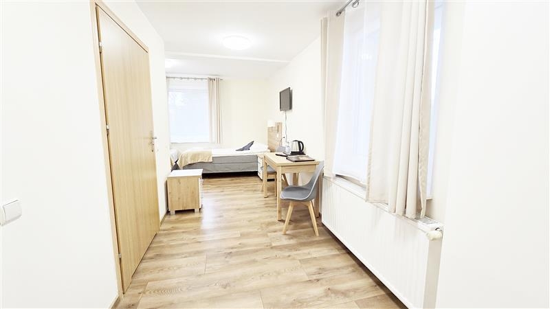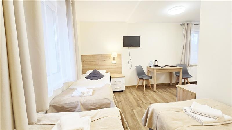 W pokoju trzy łóżka , szafa, komoda - co pozwala na wynajem rodzinie. Wszystko zostaje w cenie lokalu.