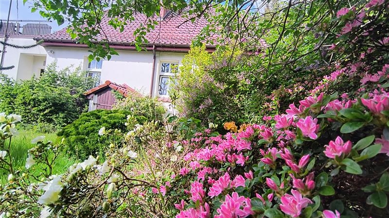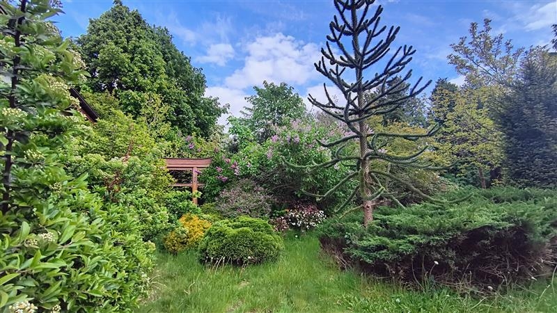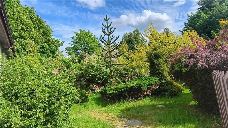 Działka o powierzchni 680m2, w kształcie zbliżonym do prostokąta, w całości ogrodzona, trawnik i nieliczne nasadzenia w tym: piękne, wieloletnie magnolie, azalie japońskie, różaneczniki, lilaki, kalina, egzotyczna kilkumetrowa araukaria oraz krzewy, uzbrojona jest we wszystkie media, budynek wyposażony w instalację elektryczną, wodną, kanalizacyjną i gazową.