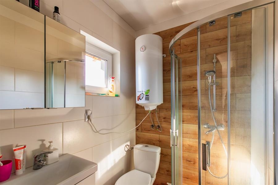 Okna PCV, panele podłogowe, łazienka - terakota, glazura, kabina, bojler elektryczny.