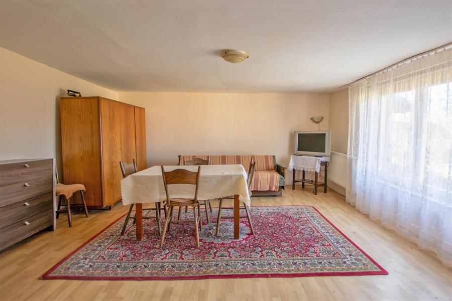 Budynek mieszkalny o pow. 80 m2 ; przedwojenny, parterowy z poddaszem, murowany, pokryty dachówką.