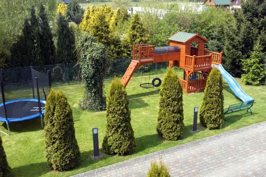 Działka o pow. 1087 m2, ogrodzona i zagospodarowana, miejsca parkingowe, plac zabaw dla dzieci, zielony teren rekreacyjny.