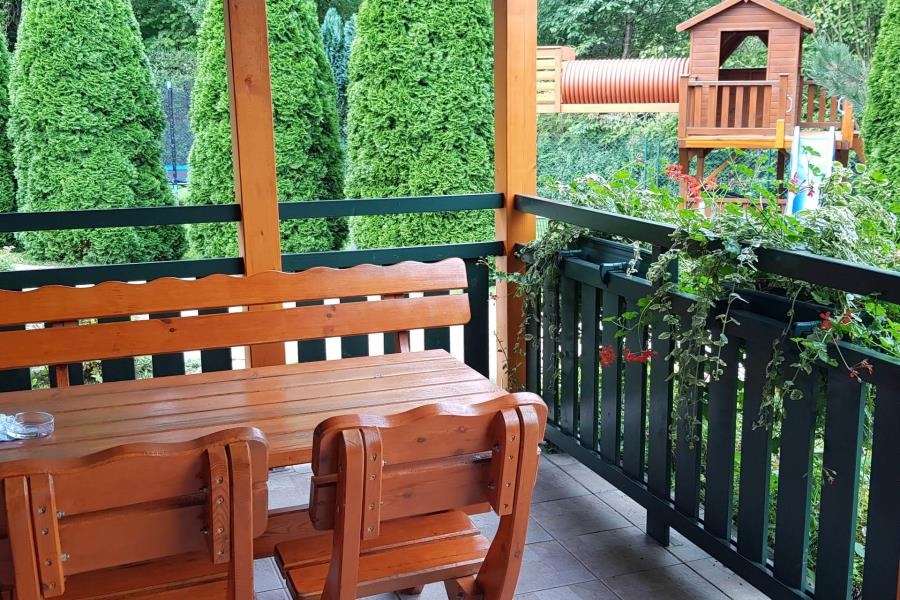 W cenie: umeblowanie i wyposażenie domków, zabudowa kuchenna, płyta ceramiczna, lodówka.