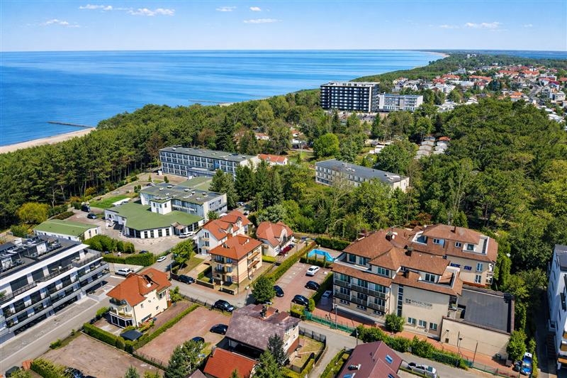 Apartament znajduje się w budynku, w którym funkcjonują również inne lokale użytkowane w sezonie letnim, co potwierdza atrakcyjność tego miejsca w kontekście turystycznym. Jednocześnie ulica Pogodna zachowuje spokojniejszy charakter, typowy dla drugiej linii zabudowy, bez bezpośredniego sąsiedztwa promenady.