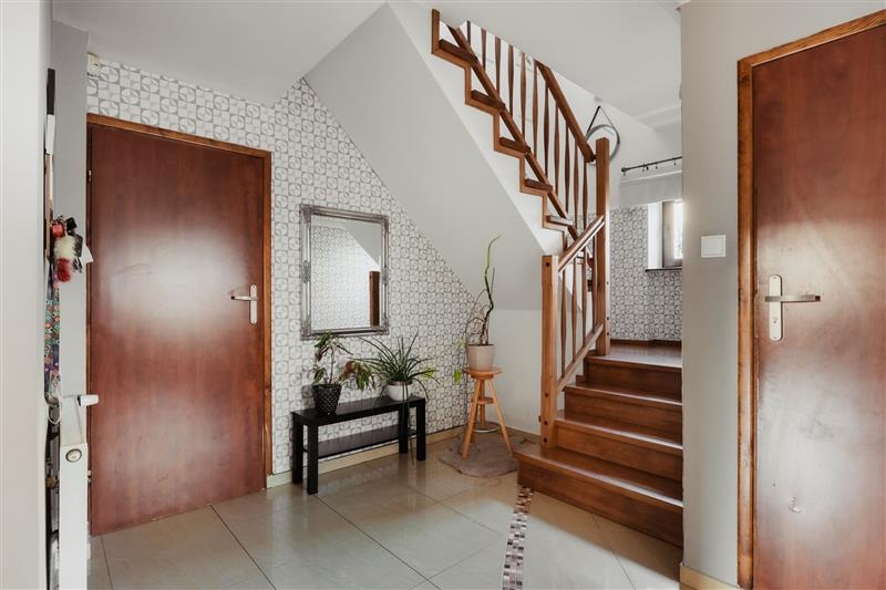 Dom posiada osobne wejście, które znajduje się pod tarasem,