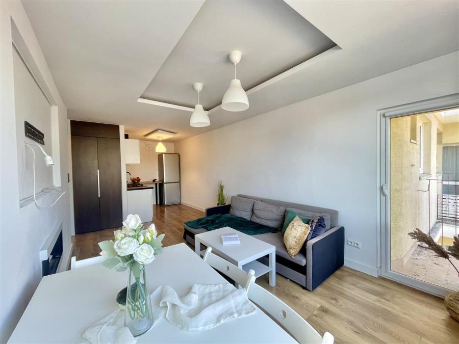 Lokal składa się z salonu z aneksem kuchennym, oddzielnej sypialni, przedpokoju oraz łazienki. Dodatkowym atutem jest balkon, idealny na poranną kawę.