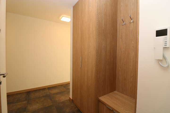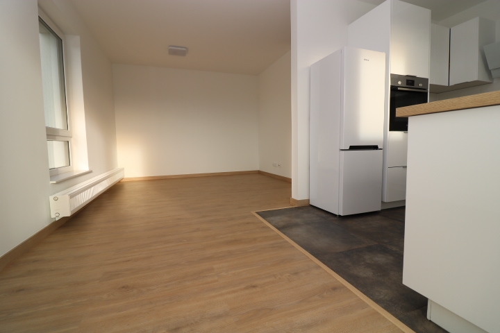 Kuchnia w pełni umeblowana i wyposażona w sprzęt AGD -zmywarka, piekarnik, płyta indukcyjna, lodówka, pochłaniacz.