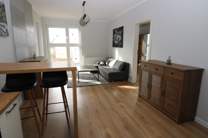 Kuchnia w pełni umeblowana i wyposażona w sprzęt AGD. Pokoje umeblowane.