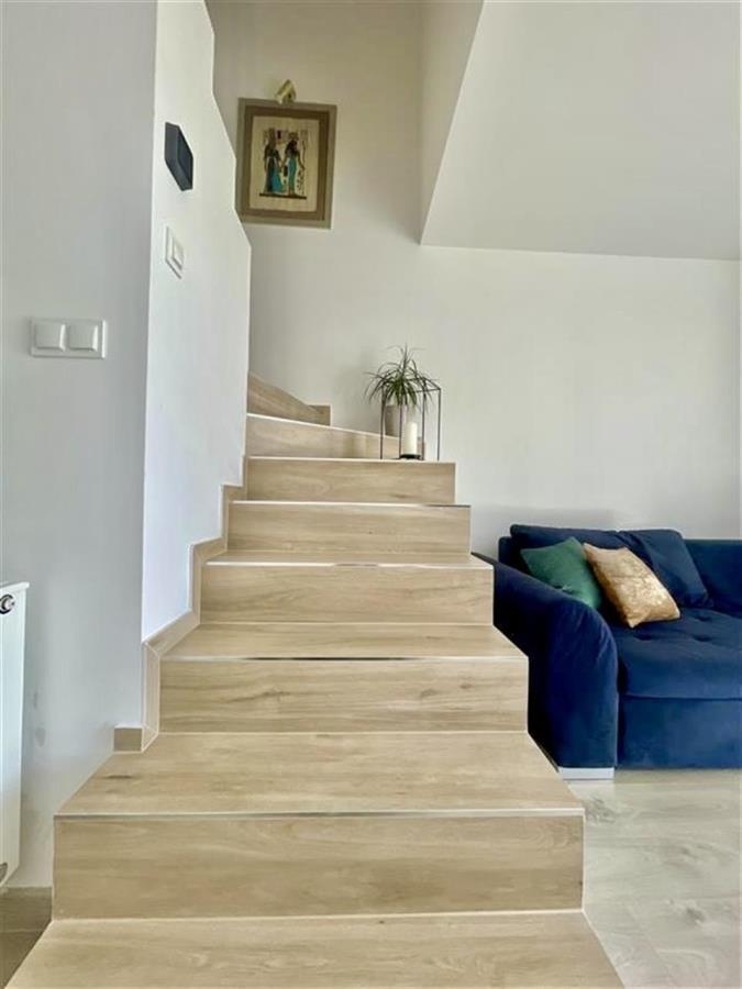 Jasny salon o pow. 23m2 - jasny i przestronny, stanowiący serce tego domu, idealne miejsce do wypoczynku i spotkań z rodziną lub przyjaciółmi. Duże przeszklenia zapewniają naturalne doświetlenie wnętrza i prowadzą bezpośrednio na prywatny ogródek o powierzchni ok. 250 m², który stanowi doskonałe przedłużenie przestrzeni dziennej.