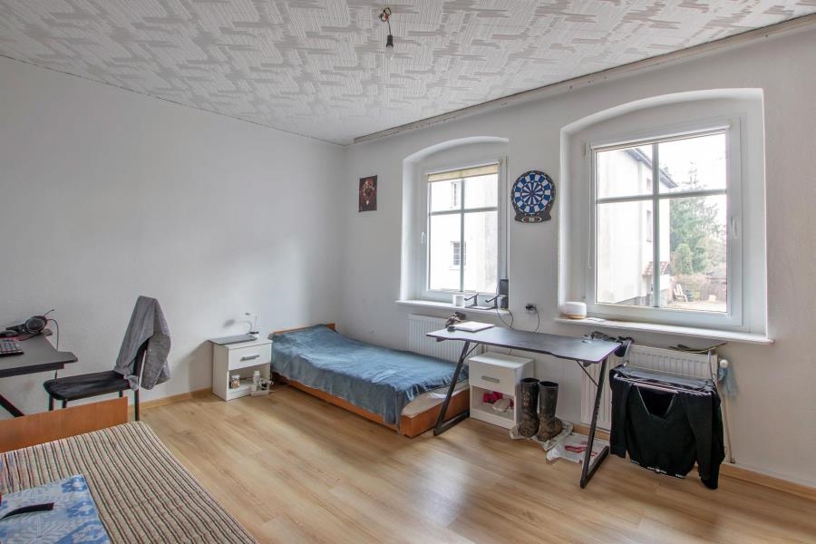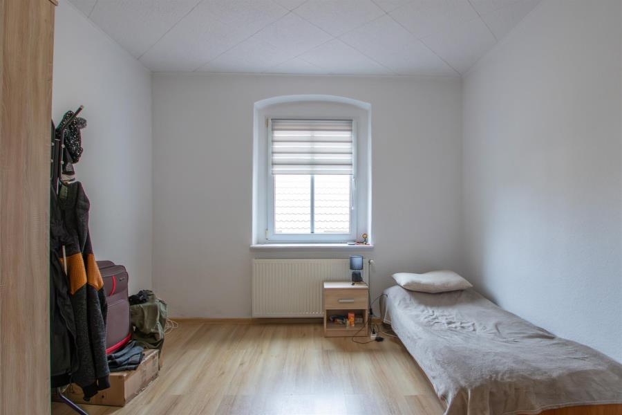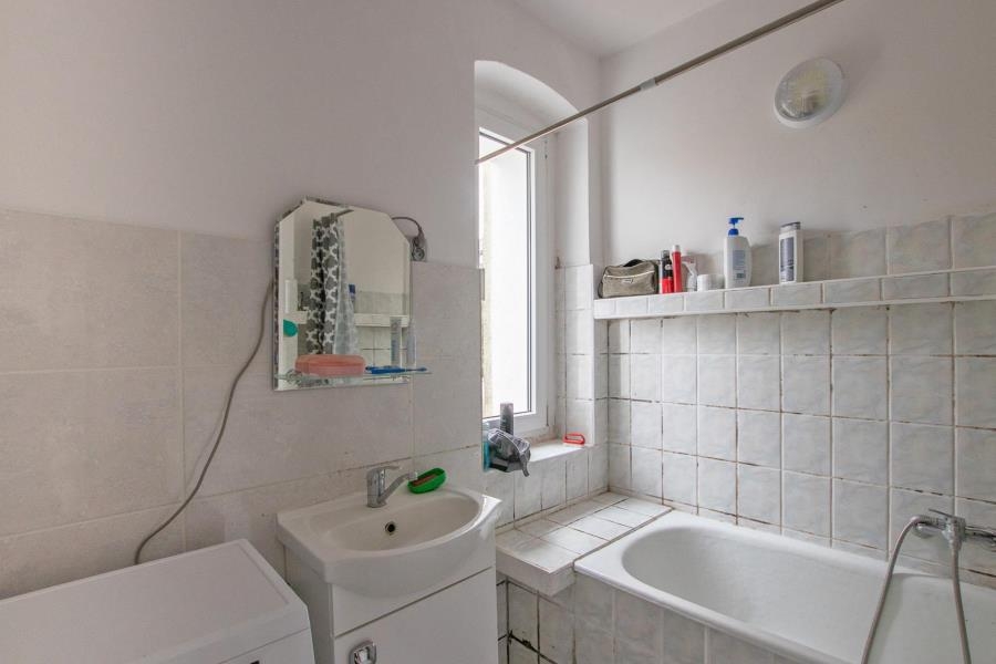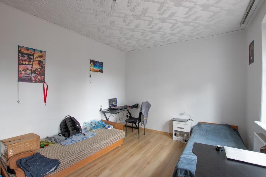 Pokoje - gładzie gipsowe, panele podłogowe; w łazience - terakota, glazura, wanna.