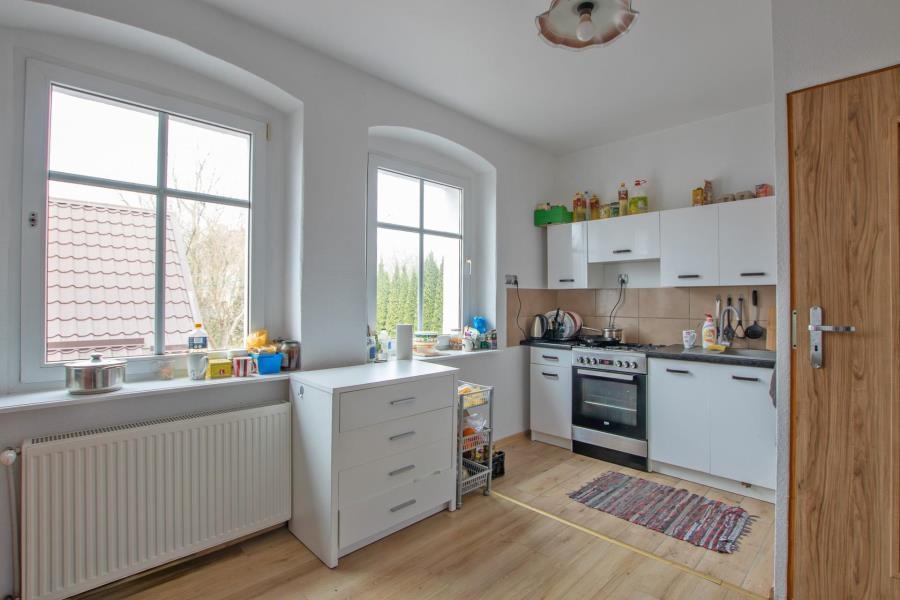 Do mieszkania przynależy piwnica o pow. 7,40 m2 oraz pom. gospodarcze na strychu o pow. 1,50 m2.