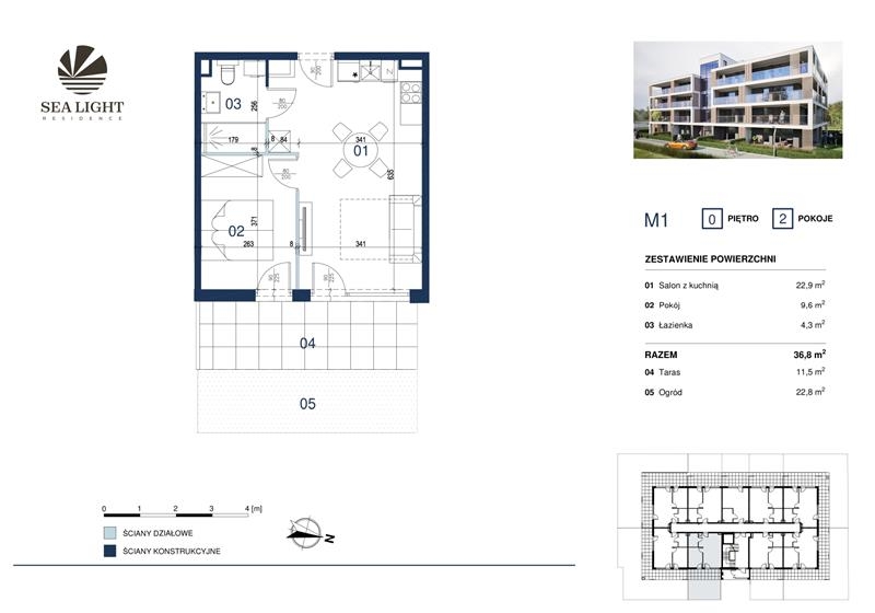 Prezentujemy dwupokojowy apartament o powierzchni 36,80 mkw z tarasem i ogródkiem położony na parterze.